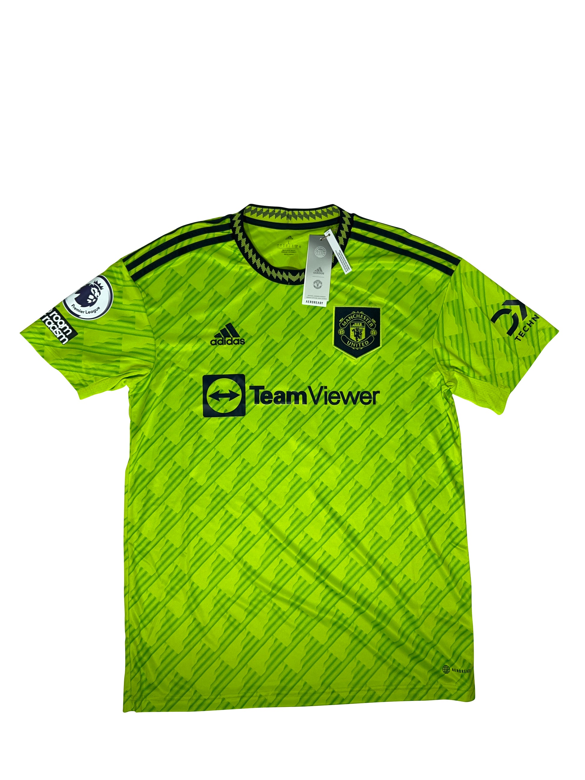 Original Manchester United tredjetrøje fra sæsonen 2022/23 med Cristiano Ronaldo-tryk. Ny og i perfekt stand – stadig med originalt hængemærke.